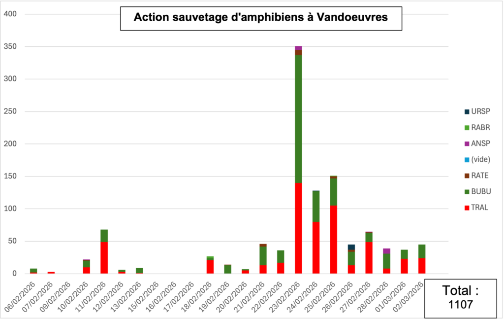 A ce jour, ce sont 1107 amphibiens qui ont pu être sauvés! Par contre 151 n’ont pas échappés aux roues des voitures.